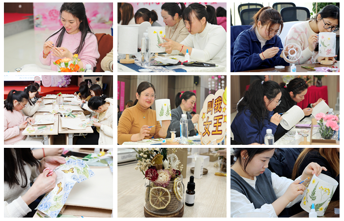 巧手匠心,創(chuàng)意無限。女職工們在專業(yè)老師的指導(dǎo)下,親手制作了精美的古法壓花臺燈、蝶古巴特手工包和植物香薰。大家充分發(fā)揮創(chuàng)意,制作出獨(dú)一無二的作品。手工制作不僅讓大家體驗(yàn)到了動手的樂趣,也增進(jìn)了同事之間的交流與互動。活動結(jié)束后,大家拿著自己親手制作的作品,臉上洋溢著滿足的笑容
