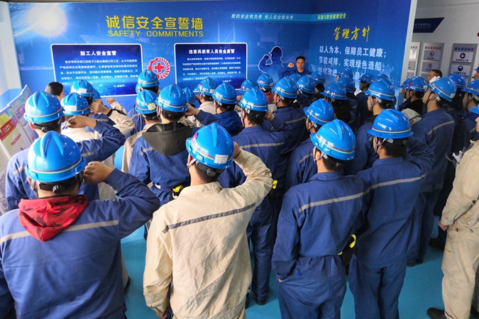 On March 27th, the Safety Experience Center, located on the third floor of the Group Training and Education Center, was officially completed and put into use. Today, the Safety and Environment Department conducted a security experience training for 132 new intern trainees in the New Yangzi Shipyard.